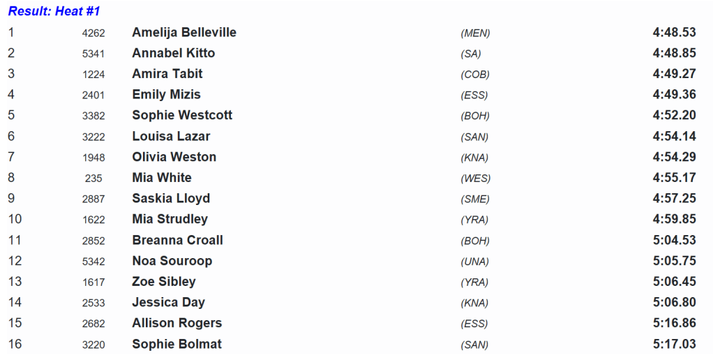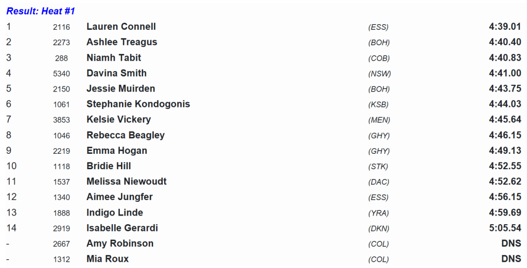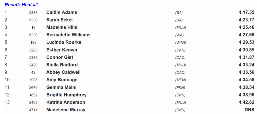 Lucinda Rourke would close the best of the rest over the last lap in an impressive performance, running 4:29.53 and taking a scalp or two along the way.