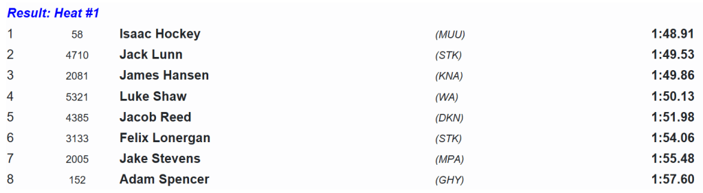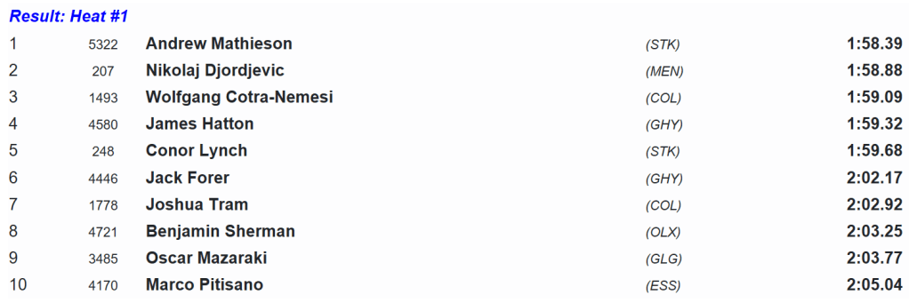 James Hansen also snuck under the 1:50 barrier with 1:49.86, whilst Luke Shaw was less fortunate in running 1:50.13.